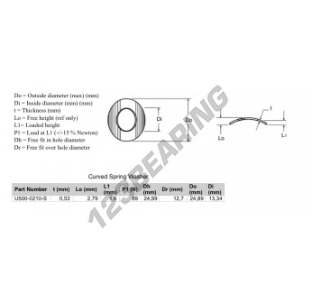 Arruela Curva CSW-24.89-13.34-0.53-SS Genéricos, Espessura 0.53 mm