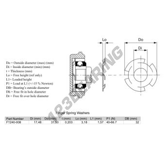 Arruela De Mola F1240-009 Genéricos, Diâmetro interior 17.48 mm, Diâmetro exterior 31.5 mm, Espessura 0.203 mm