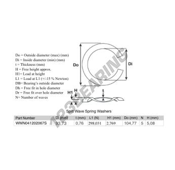 Arruela Ondulada Aberta SWSW-104.770-93.730-0.760-5-SS Genéricos, Diâmetro interior 93.73 mm, Espessura 0.76 mm