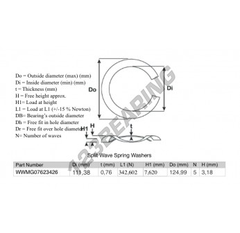 Arruela Ondulada Aberta SWSW-124.99-111.38-0.76-5 Genéricos, Diâmetro interior 111.38 mm, Espessura 0.76 mm