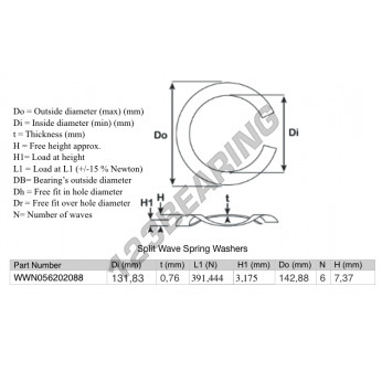 Arruela Ondulada Aberta SWSW-142.88-131.83-0.76-6 Genéricos, Diâmetro interior 131.83 mm, Espessura 0.76 mm