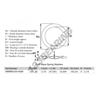 Arruela Ondulada Aberta SWSW-165-151.38-0.76-6 Genéricos, Diâmetro interior 151.38 mm, Espessura 0.76 mm