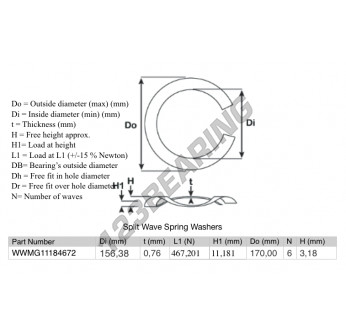 Arruela Ondulada Aberta SWSW-170-156.38-0.76-6 Genéricos, Diâmetro interior 156.38 mm, Espessura 0.76 mm