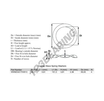 A Arruela Ondulada De Sobreposição pela referência OWSW-55-46.110-0.610-4 tem um diâmetro interno de 46.11mm e uma espessura de 0.61mm. É feito de material AÇO.