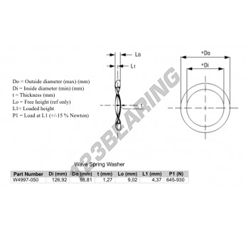 A Arruela Onduladas referência WSW-126.92-98.81-1.27 tem um diâmetro interno de 98.81mm e uma espessura de 1.27 mm. É feito de AÇO.