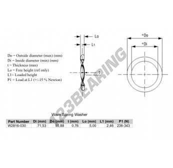 A Arruela Onduladas referência WSW-71.53-55.88-0.76 tem um diâmetro interno de 55.88mm e uma espessura de 0.76 mm. É feito de AÇO.