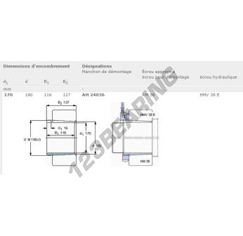 Bucha AH24036-SKF, Diâmetro interior 170 mm, Diâmetro exterior 180 mm, Espessura 116 mm