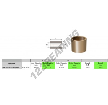 O anel de bronze genérico BAI11.1125-14.2875-9.525 tem um diâmetro interior de 11.1125mm, um diâmetro exterior de 14.2875mm e um comprimento de 9.525mm.