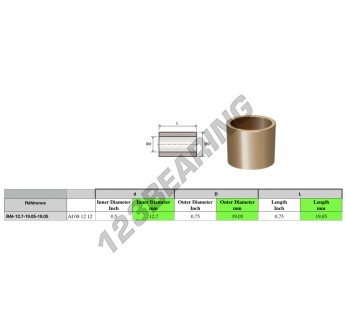 O anel de bronze genérico BAI12.7-19.05-19.05 tem um diâmetro interior de 12.7mm, um diâmetro exterior de 19.05mm e um comprimento de 19.05mm.
