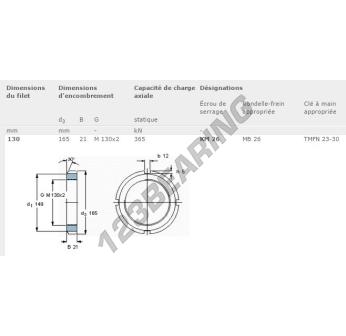 Esta porca tem um diâmetro interno de 130mm, um diâmetro externo de 165mm e uma espessura de 21mm.