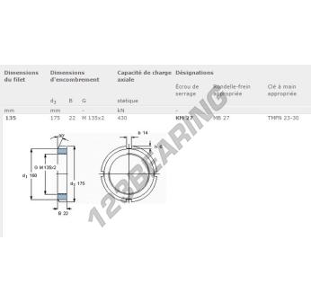 Esta porca tem um diâmetro interno de 135mm, um diâmetro externo de 175mm e uma espessura de 22mm.