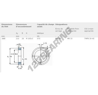 Esta porca tem um diâmetro interno de 165mm, um diâmetro externo de 210mm e uma espessura de 26mm.