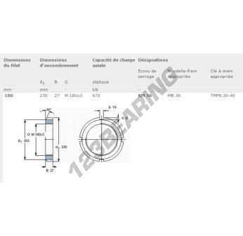 Esta porca tem um diâmetro interno de 180mm, um diâmetro externo de 230mm e uma espessura de 27mm.
