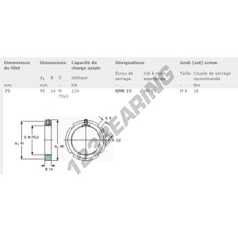 Esta porca tem um diâmetro interno de 75mm, um diâmetro externo de 98mm e uma espessura de 14mm.