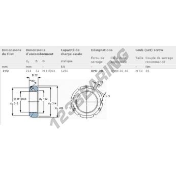 Esta porca tem um diâmetro interno de 190mm, um diâmetro externo de 214mm e uma espessura de 32mm.