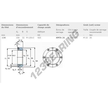 Esta porca tem um diâmetro interno de 130mm, um diâmetro externo de 156mm e uma espessura de 32mm.