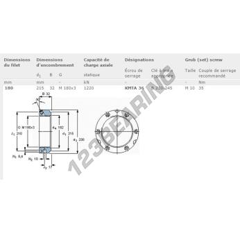Esta porca tem um diâmetro interno de 180mm, um diâmetro externo de 215mm e uma espessura de 32mm.