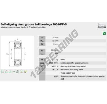 OAcessório De Mancal conhecido pela referência 205-XL-NPP-B-INA, da marca INA tem um diâmetro interior de 25mm, um diâmetro exterior de 52mm e uma espessura de 15mm.