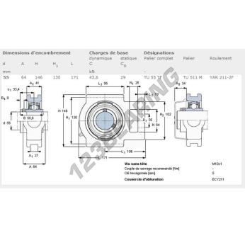 O Rolamento - 1 Montagem conhecido pela referência TU55-TF-SKF tem um diâmetro de furo de 55. Este número de peça é feito de ferro fundido e é apertado por parafuso de bloqueio.