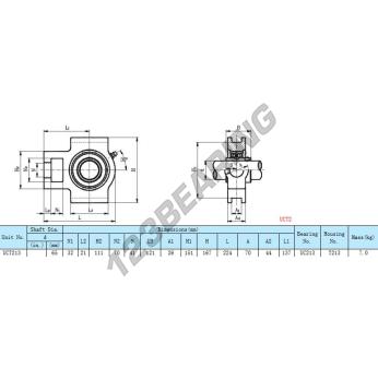 O Rolamento - 1 Montagem conhecido pela referência UCT213 tem um diâmetro de furo de 65. Este número de peça é feito de ferro fundido e é apertado por parafuso de bloqueio.