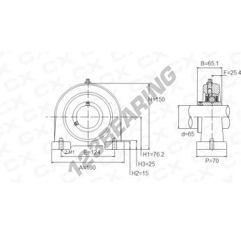 O Rolamento - 2 Fixadores conhecido pela referência UCPA213 tem um diâmetro de furo de 65 e uma distância entre centros de fixação de 124. Esta referência é feita de ferro fundido e é apertada por parafuso de bloqueio.