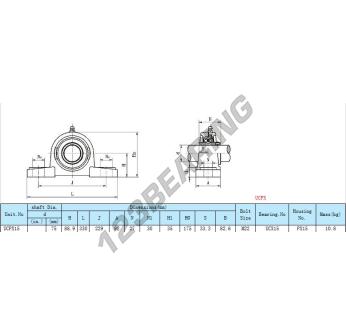 O Rolamento - 2 Fixadores conhecido pela referência UCPX15 tem um diâmetro de furo de 75 e uma distância entre centros de fixação de 229. Esta referência é feita de ferro fundido e é apertada por parafuso de bloqueio.