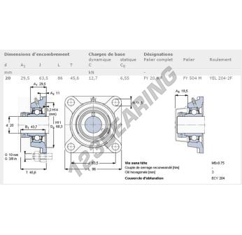 O rolamento de 4 parafusos FY20-WF-SKF tem um diâmetro de furo de 20 e uma distância entre centros de parafusos de 63.5. Esta referência é fabricada em ferro fundido fundido e é apertada por Anel de bloqueio excêntrico.