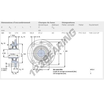 O rolamento de 4 parafusos FYC65-TF-SKF tem um diâmetro de furo de 65 e uma distância entre centros de parafusos de 120.2. Esta referência é fabricada em ferro fundido fundido e é apertada por parafuso de bloqueio.