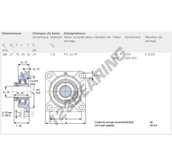 O rolamento de 4 parafusos FYJ25-KF-SKF tem um diâmetro de furo de 20 e uma distância entre centros de parafusos de 70. Esta referência é fabricada em ferro fundido fundido e é apertada por Manga de aperto.