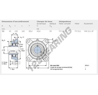 O rolamento de 4 parafusos FYJ55-TF-SKF tem um diâmetro de furo de 55 e uma distância entre centros de parafusos de 130. Esta referência é fabricada em ferro fundido fundido e é apertada por parafuso de bloqueio.
