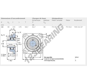O rolamento de 4 parafusos FYJ60-TF-SKF tem um diâmetro de furo de 60 e uma distância entre centros de parafusos de 143. Esta referência é fabricada em ferro fundido fundido e é apertada por parafuso de bloqueio.