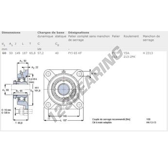 O rolamento de 4 parafusos FYJ65-KF-SKF tem um diâmetro de furo de 60 e uma distância entre centros de parafusos de 149. Esta referência é fabricada em ferro fundido fundido e é apertada por Manga de aperto.