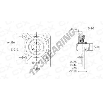 O rolamento de 4 parafusos UCF318 tem um diâmetro de furo de 90 e uma distância entre centros de parafusos de 216. Esta referência é fabricada em ferro fundido fundido e é apertada por parafuso de bloqueio.