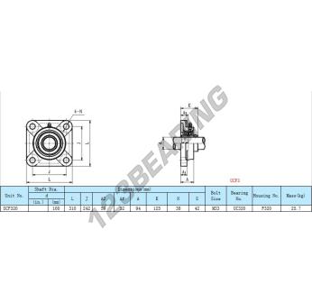 O rolamento de 4 parafusos UCF320 tem um diâmetro de furo de 100 e uma distância entre centros de parafusos de 242. Esta referência é fabricada em ferro fundido fundido e é apertada por parafuso de bloqueio.