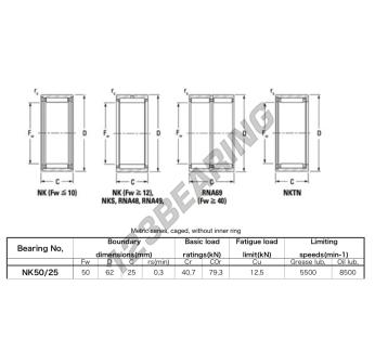 O Rolamento De Agulhas, conhecido como NK5025A-JTEKT, da marca JTEKT, tem um diâmetro interno de 50mm, um diâmetro externo de 62mm e uma espessura de 25mm.