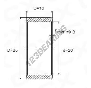 O Anel Interno conhecido como IR20X25X16, da marca Genéricos, tem um diâmetro interno de 20mm, um diâmetro externo de 25mm e uma espessura de 16mm.