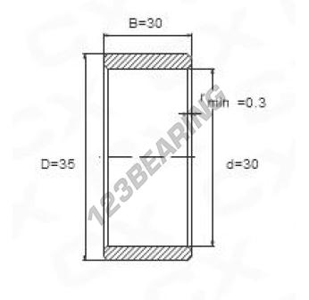 O Anel Interno conhecido como IR30X35X30, da marca Genéricos, tem um diâmetro interno de 30mm, um diâmetro externo de 35mm e uma espessura de 30mm.