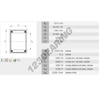 O Casquilho De Agulhas, conhecido pela referência BCE138-INA, da marca INA, tem um diâmetro interior de 20.64mm, um diâmetro exterior de 26.99mm e uma espessura de 12.7mm.