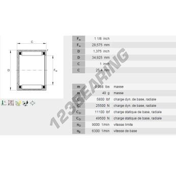 O Casquilho De Agulhas, conhecido pela referência BCE1816-INA, da marca INA, tem um diâmetro interior de 28.58mm, um diâmetro exterior de 34.93mm e uma espessura de 25.4mm.