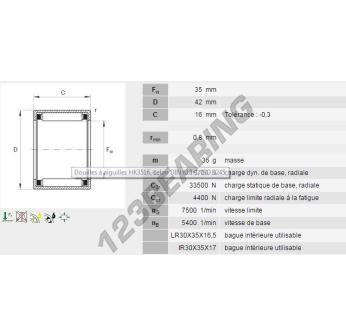 O Casquilho De Agulhas, conhecido pela referência HK3516-B-INA, da marca INA, tem um diâmetro interior de 35mm, um diâmetro exterior de 42mm e uma espessura de 16mm.
