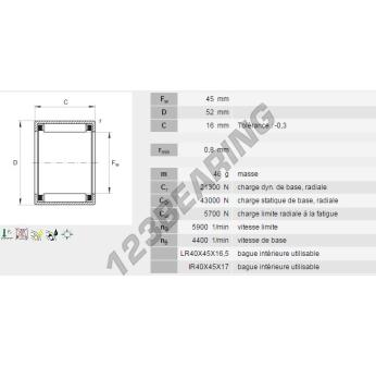 O Casquilho De Agulhas, conhecido pela referência HK4516-A-HLA-INA, da marca INA, tem um diâmetro interior de 45mm, um diâmetro exterior de 52mm e uma espessura de 16mm.