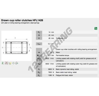 A Roda Livre, conhecida pela referência HFL1426-L564-INA, da marca INA, tem um diâmetro interior de 14mm, um diâmetro exterior de 20mm e uma espessura de 26mm.