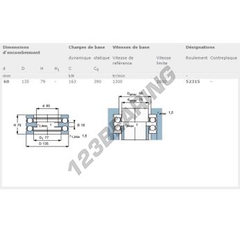 A Batente De Esferas, conhecido pela referência 52315-SKF, da marca SKF, tem um diâmetro interior de 60mm, um diâmetro exterior de 135mm e uma espessura de 79mm.