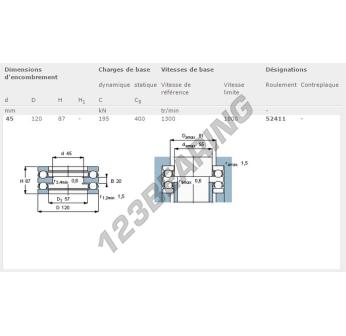 A Batente De Esferas, conhecido pela referência 52411-SKF, da marca SKF, tem um diâmetro interior de 45mm, um diâmetro exterior de 120mm e uma espessura de 87mm.