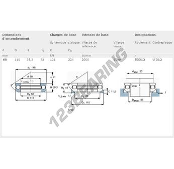 A Batente De Esferas, conhecido pela referência 53312-SKF, da marca SKF, tem um diâmetro interior de 60mm, um diâmetro exterior de 110mm e uma espessura de 38.3mm.
