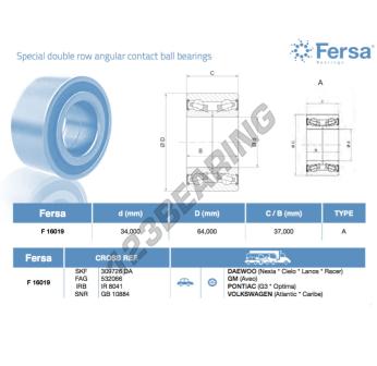 Concebido para durar, o Rolamento De Esferas conhecido pela referência : 516019-ASFERSA, da marca ASFERSA tem um diâmetro interno de 34 mm, um diâmetro externo de 64 mm e uma espessura de 37 mm. Este produto é fiável e eficiente.