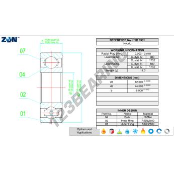 Concebido para durar, o Rolamento De Esferas conhecido pela referência : HYB-6901-ZEN, da marca ZEN tem um diâmetro interno de 12 mm, um diâmetro externo de 24 mm e uma espessura de 6 mm. Este produto é fiável e eficiente.