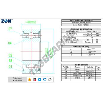 Concebido para durar, o Rolamento De Esferas conhecido pela referência : MR148-2Z-ZEN, da marca ZEN tem um diâmetro interno de 8 mm, um diâmetro externo de 14 mm e uma espessura de 4 mm. Este produto é fiável e eficiente.