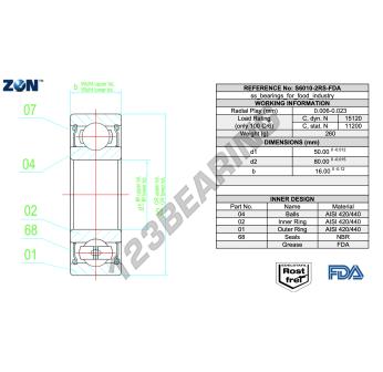 Concebido para durar, o Rolamento De Esferas conhecido pela referência : S6010-2RS-FDA-AISI420-ZEN, da marca ZEN tem um diâmetro interno de 50 mm, um diâmetro externo de 80 mm e uma espessura de 16 mm. Este produto é fiável e eficiente.