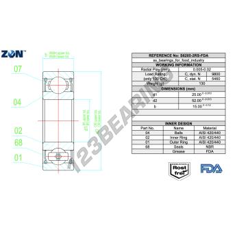 Concebido para durar, o Rolamento De Esferas conhecido pela referência : S6205-2RS-FDA-AISI420-ZEN, da marca ZEN tem um diâmetro interno de 25 mm, um diâmetro externo de 52 mm e uma espessura de 15 mm. Este produto é fiável e eficiente.